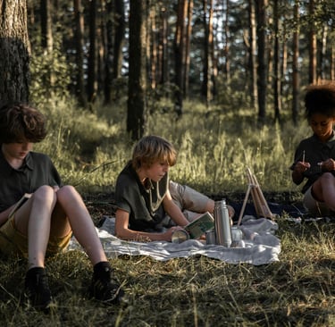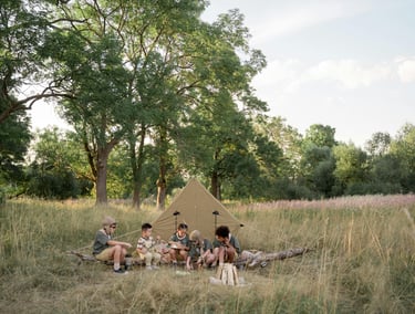 Around the fire circle: testimonies, songs, shared stories, and moments of quiet prayer. A peaceful space where kids feel safe to open up and reflect.